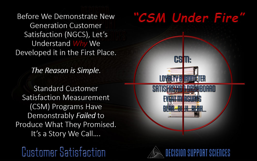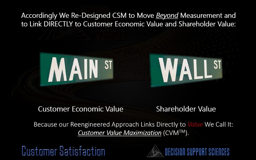 There is no pretty way to say it. Customer Satisfaction Measurement (CSM) has utterly failed. It's legacy? CSM deeply measured metrics that did not link to the promised real-world outcomes. We discovered this in 1994...even before Fred Reicheld published his landmark insight that CSM linked reliably to only one thing: the likelihood to recommend. This also led us to survey actual practitioners...to see how deep the CSM rabbit hole really went. See their quotes above! Their insights coupled with other data led us to re-engineer CSM into producing value for both the organization and the customer -- a business line we call Customer Value Maximization (CVM).
