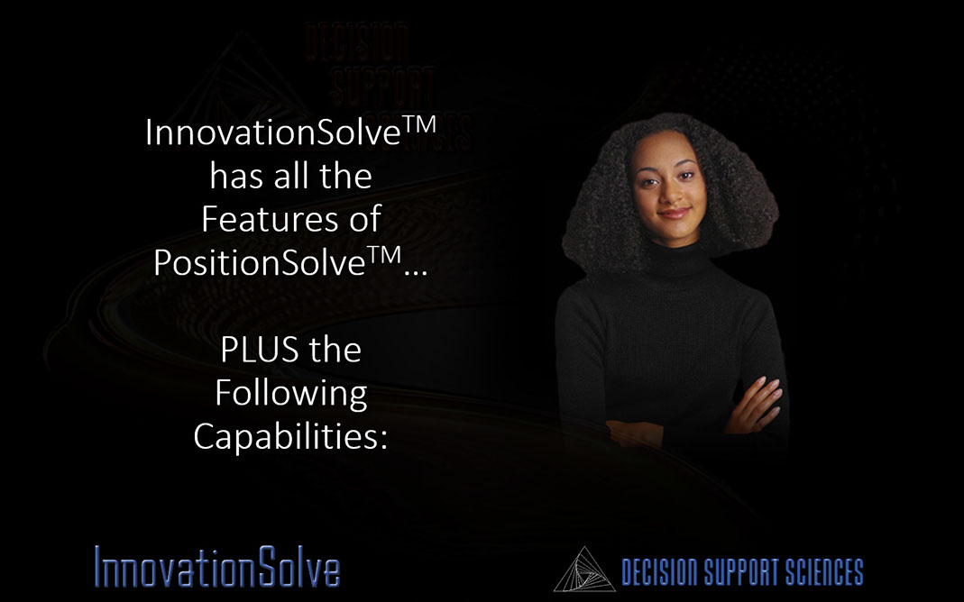 To explore some of InnovationSolve™'s features, after June 15th, 2016, download the 15 day free trial of PositionSolve™. To purchase the InnovationSolve™ platform, contact sales@decisionsupportsciences.com.