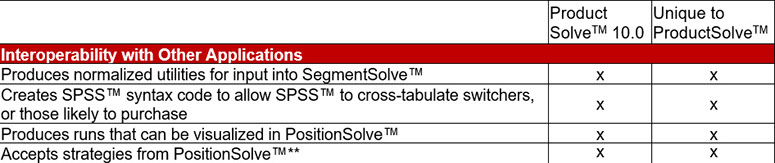 One of the primary reasons why ProductSolve™ outperforms other simulators relates directly to our adaptive survey system. That system: 1) reduces irrelevant attributes for each respondent 2) reproduces the real-world purchase environment 3) requires the respondent to make the same product feature trade-offs in the survey that they must make in real life 4) adapts in real time to prior choices to zero-in on that particular consumer's most critical values and 5) discovers "how much" preference (summed importance) it takes to meet real-world thresholds (e.g. switching, purchase, etc.)