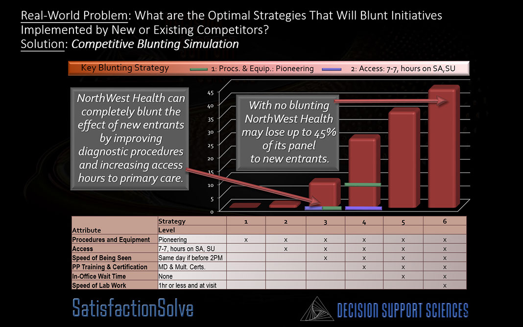 SatisfactionSolve™ is not only for customer satisfaction! In fact SatisfactionSolve™ has embedded within it ALL the capabilities of ProductSolve™. Why you might ask? ProductSolve™ is the premier decision support platform to identify which changes to you products and services will maximize Real World Outcomes (RWO's) at the lowest cost to implement and the lowest cost to maintain.