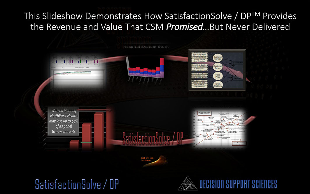 As a powerful advanced decision support platform, SatisfactionSolve /DP™ is custom installed at your site. Like all of our decision support platforms, SatisfactionSolve /DP™: