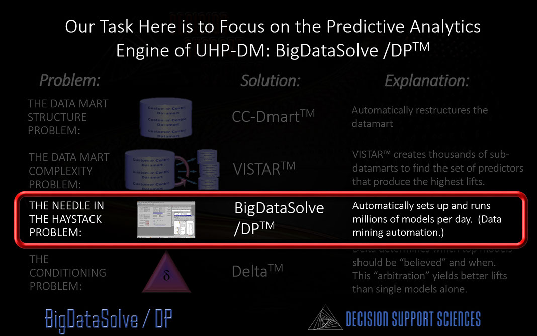 BigDataSolve /DP™ is Predictive Analytics done better, smarter AND cheaper.