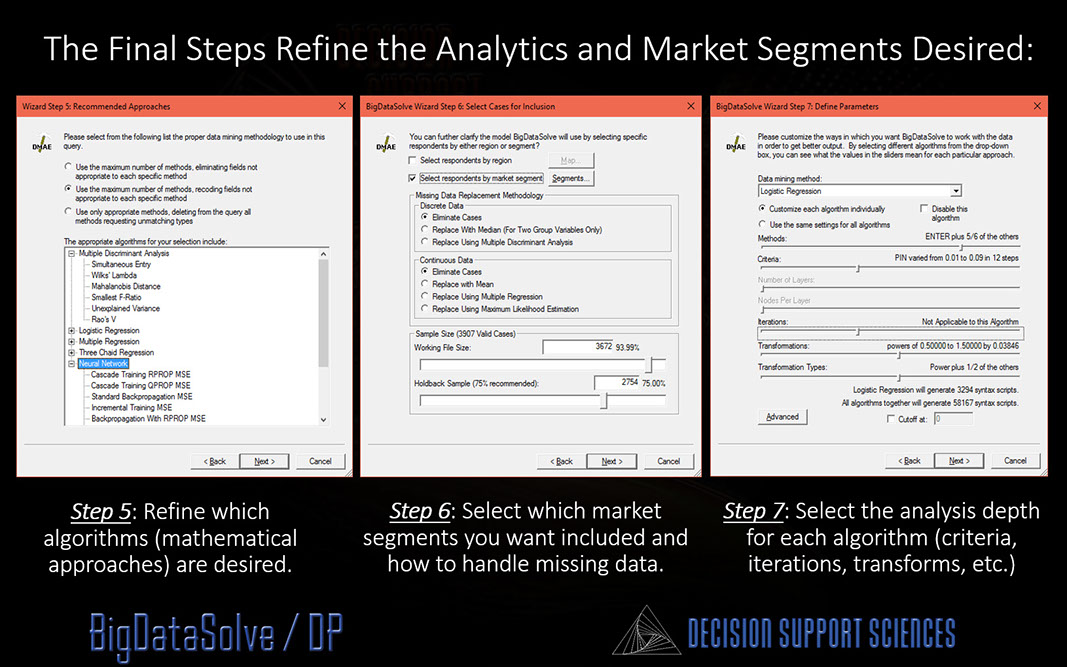 When it comes down to it, despite all of it's power BigDataSolve /DP™ is simply an advanced software application. As such, we designed it to be easy to use. It hides all the complexity of data mining from you and simply asks what you want to do using the powerful and familiar metaphor of a software "wizard."