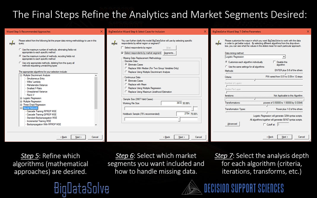 When it comes down to it, despite all of it's power BigDataSolve™ is simply an advanced software application. As such, we designed it to be easy to use. It hides all the complexity of data mining from you and simply asks what you want to do using the powerful and familiar metaphor of a software "wizard."