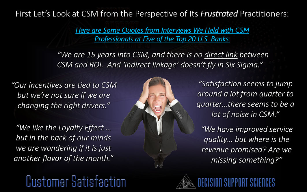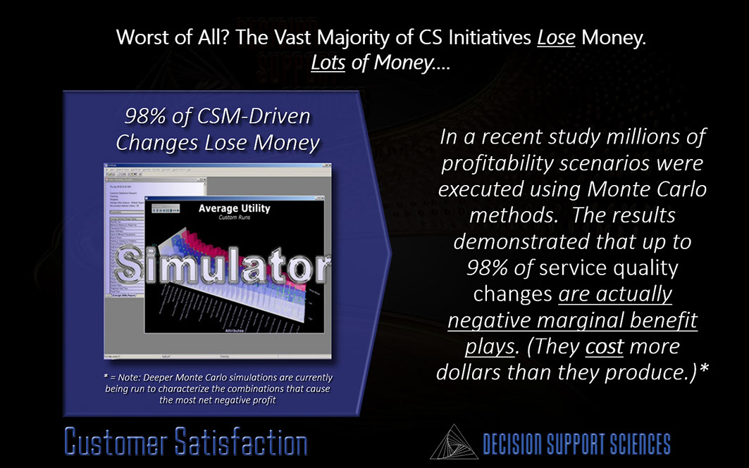Decision Support-Enabled (DSE) Customer Satisfaction achieves all these outcomes and more.  Higher accuracy CS strategies at a far lower cost.  Delivered you way.  That's enablement.