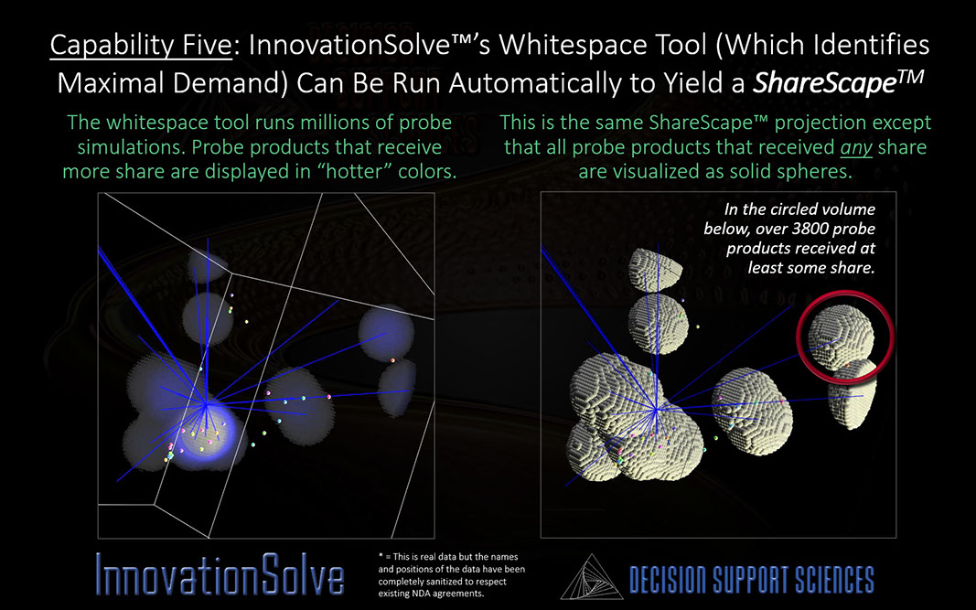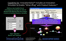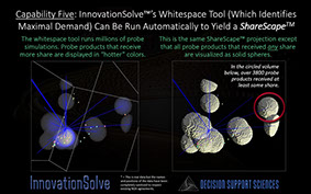 InnovationSolve™ also probes into every point in the DemandScape™ to find if building a product at each of those locations will either create new demand or win share from existing competitors. The best of those newly developed products can then be handed over to the ProductSolve™ simulator to identify how much preference share and dollar volume opportunity will be produced when that product is launched.