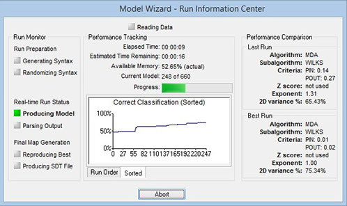 One of InnovationSolve™'s primary strengths, a characteristic it shares with PositionSolve,™ is optimization. Above is an actual real time screen capture from InnovationSolve™'s run optimizer. Notice first that InnovationSolve™ is fast. 250-500 Discriminant Analysis models can be run in about 10 seconds on a modern laptop. But more importantly, notice that the correct classification percentage (a measure of the "goodness" of the resulting brand landscape) increased from 50% to over 75%. These optimizations include transforming the predictors, eliminating those that do not meet user-adjustable criteria, and by using dozens of algorithms and sub-algorithms. Optimization is InnovationSolve™'s middle name!