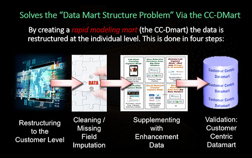 To produce the highest results (lifts) your data needs to be optimally structured. But how do you do that without shelling out big bucks to a data integrator? It's simple. Keep your production mart.... and build a customer centric modeling mart (CC-Dmart) alongside it!