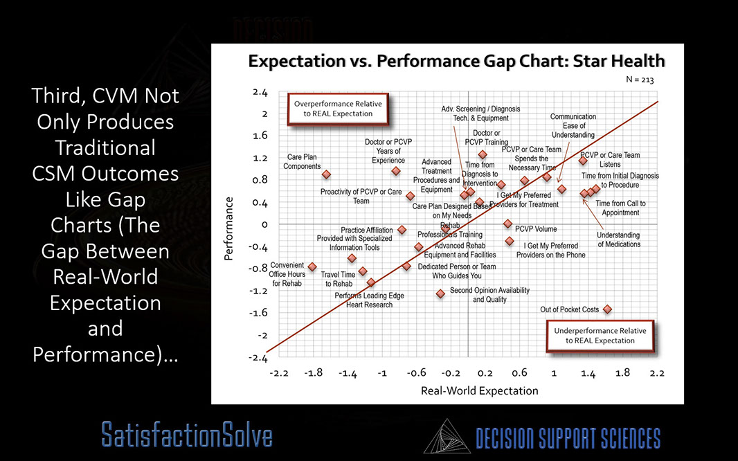 One of the most classic mistakes made by traditional CSM is that it asked consumers what they expected...and then naively assumed that we must deliver on stated expectation. The problem? Stated expectation far overstates what consumers really expect. The best way to measure real expectation is to find the minimum performance level that does not create disutility (dispreference.) In contrast, our approach uses apportioned expectation (AE) AE focuses our efforts on things proven to maximize marginal benefit....by improving the key drivers that cause disutility -- and hence negative consumer outcomes.