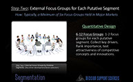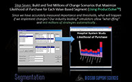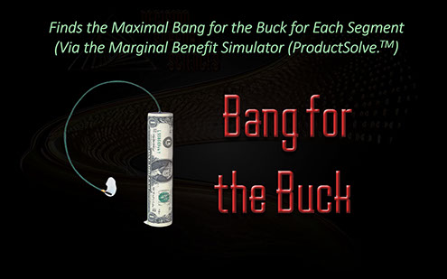 Once the best segments have been uncovered, we import them into our product and service decision support tool, ProductSolve™. Quite importantly, these tools contain threshold data...data that identifies how much change is required to bring a consumer over a real-world threshold (purchase, up-sell, cross-sell, etc.)